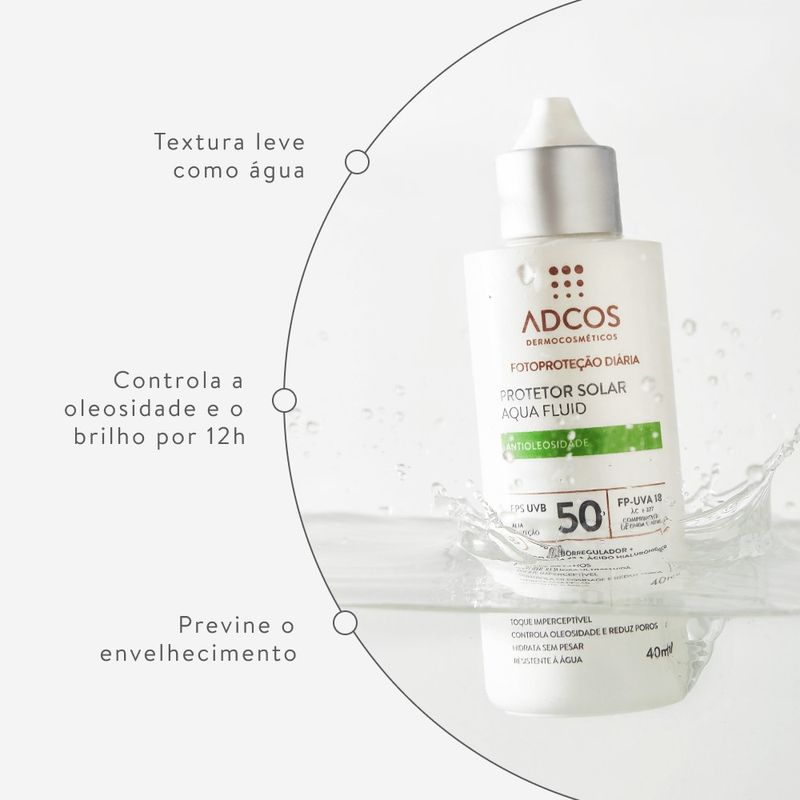 Protetor Solar Adcos Aqua Fluid FPS50 Nude Antioleosidade 40ml