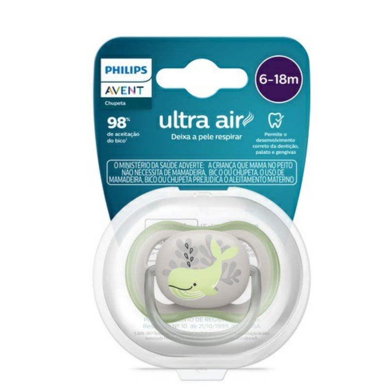 Chupeta Avent Ultra Air SCF086/05 6-18 Meses Decorada Baleia Verde 1 Unidade