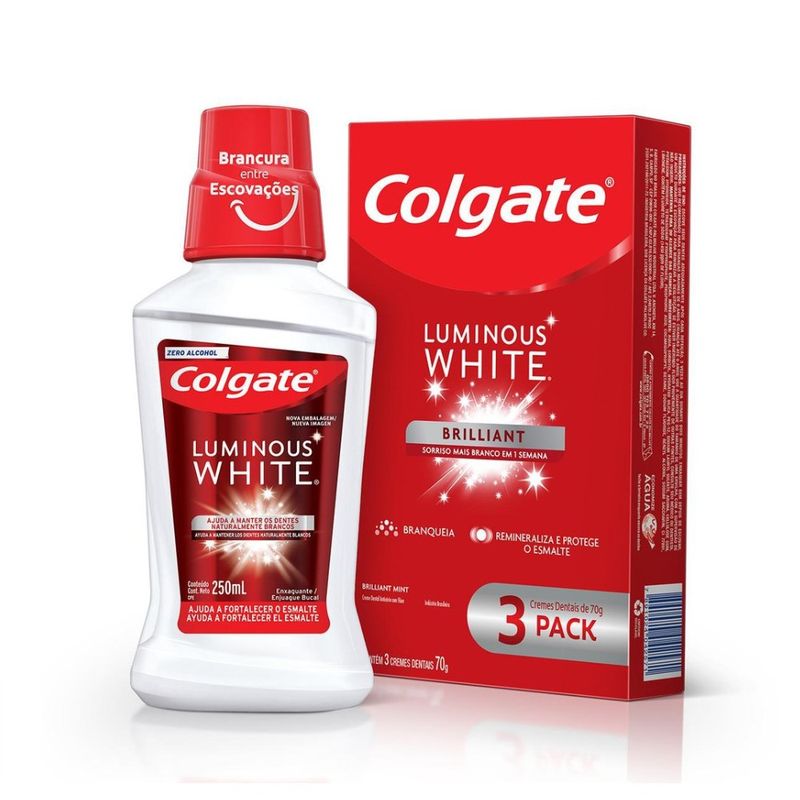 Creme Dental para Clareamento Colgate Luminous White Brilliant Mint 70g 3 Unidades Grátis 1 Enxaguante Bucal