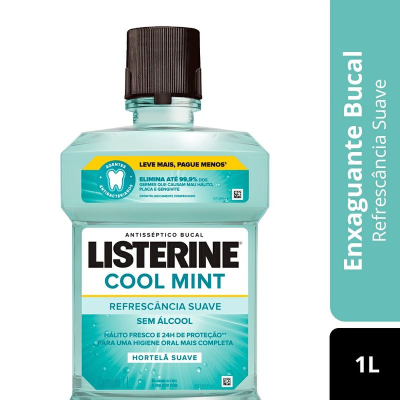 Antisséptico Bucal Listerine Cool Mint Refrescância Suave Sem Álcool 1L