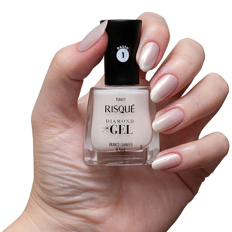 Esmalte Cremoso Risqué Diamond Gel Branco Camafeu 9,5ml