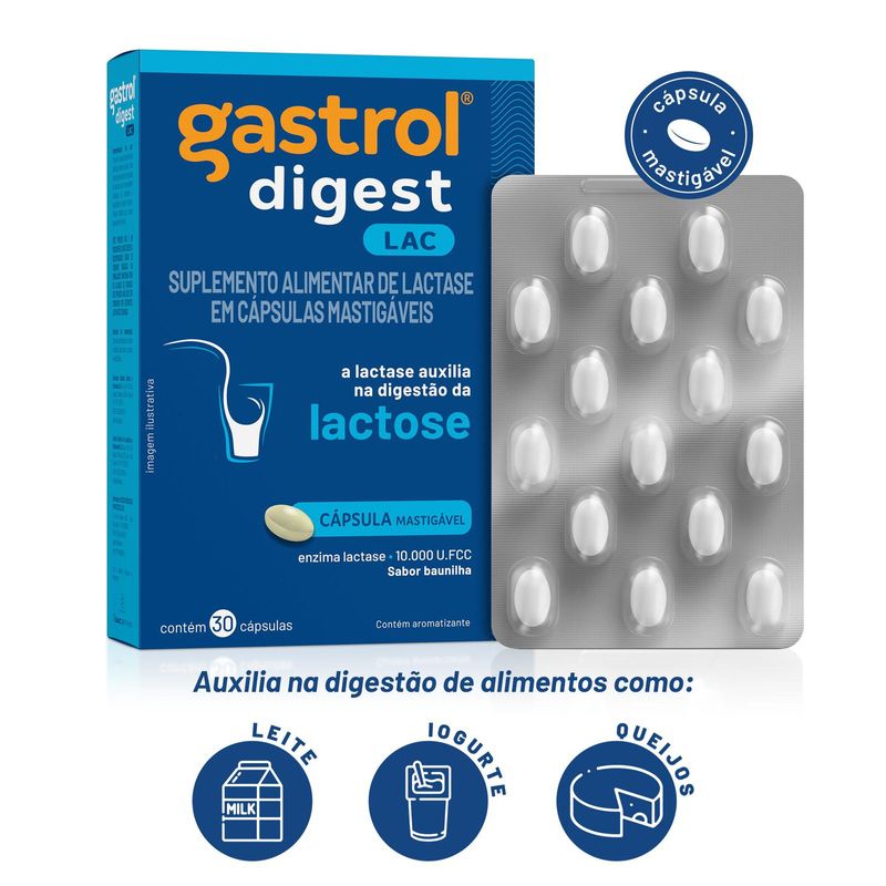 Enzima Lactase Gastrol Digest Lac Lac 10.000U.FCC 30 Cápsulas Mastigáveis