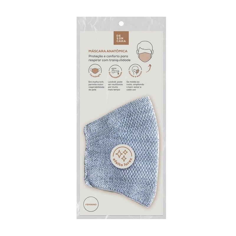 Máscara Anatômica Desencana Branca com Brilho em Lurex 1 Unidade
