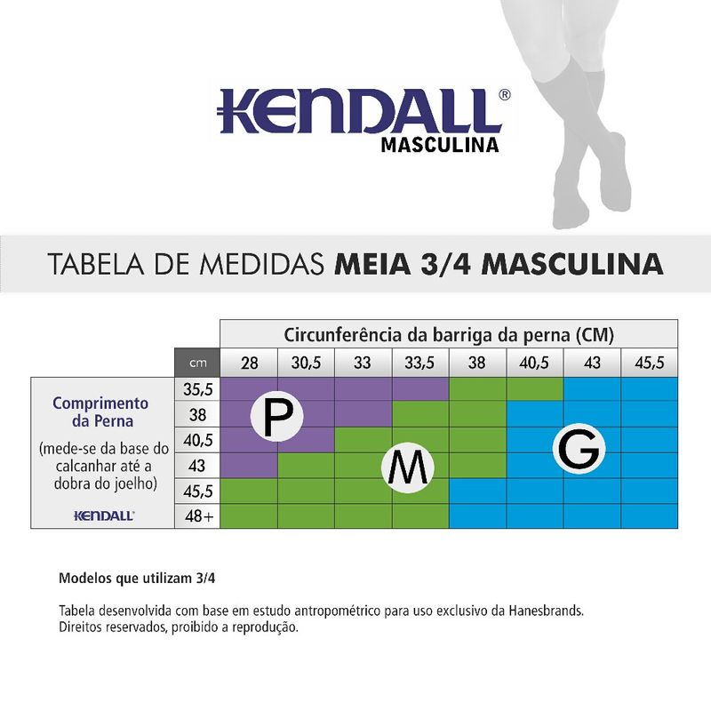 Meia 3/4 Kendall Masculina Hanesbrand Média Compressão Cor Marrom G 18-21mmHg 1802 - 1 Par