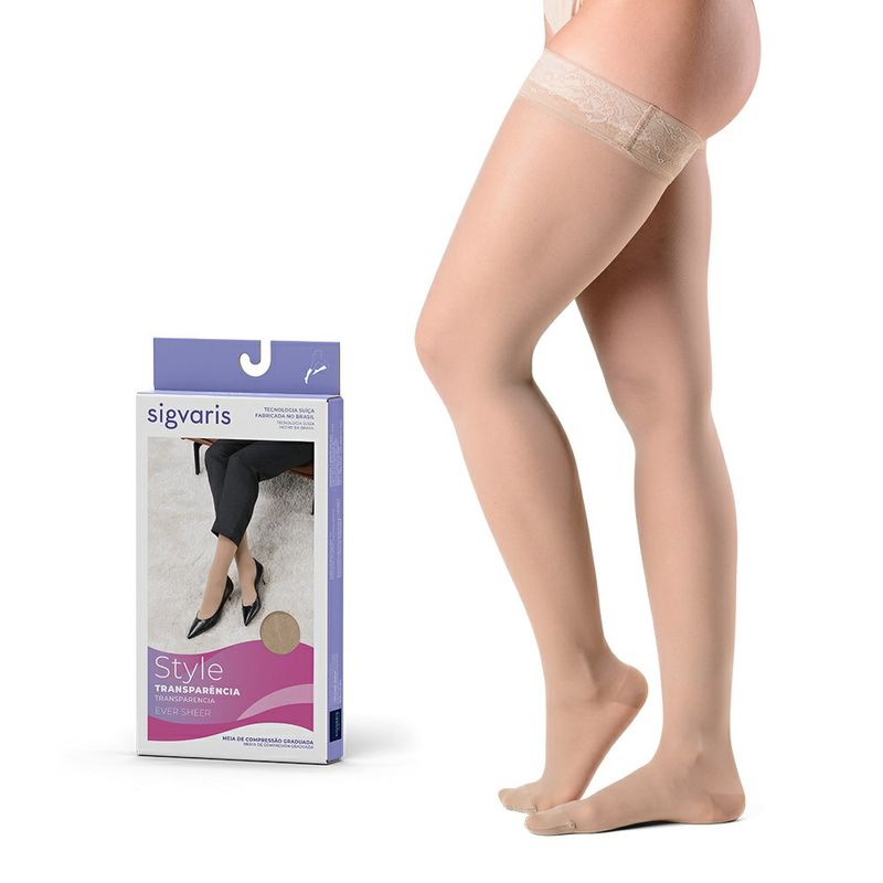 Meia 7/8 Coxa Sigvaris Style Ever Sheer 20-30mmHg Transparência P2 Ponteira Aberta 1 Par