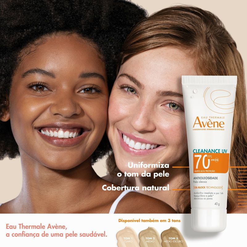 Protetor Solar Facial Avène Cleanance UV Tom 3 Médio Escuro FPS70 40g