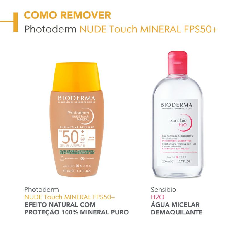 Protetor Solar Facial Bioderma Photoderm Nude Touch Mineral FPS 50+ Escuro 40ml